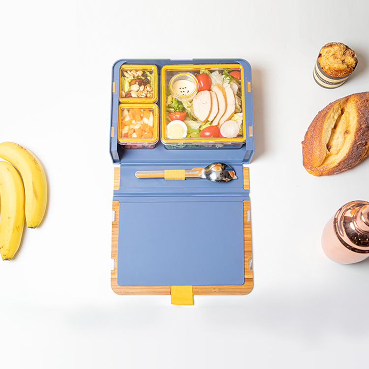 3-part Bamboo Fiber Material Lunch Box Pure Bamboo Cover Lunch Office Worker Bento Box with Tableware