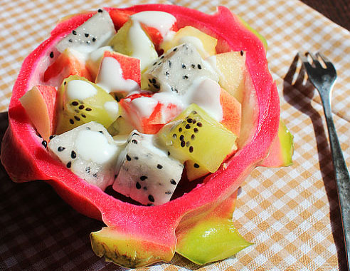 The first step:Put all the fruits and vegetables you want into the lid